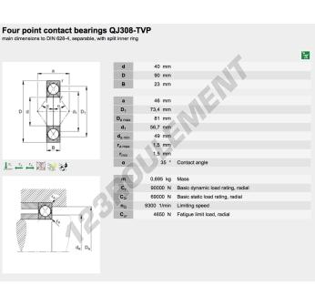 Le Roulement à Billes, connu sous la référence QJ308-XL-TVP-FAG, de la marque FAG, possède un diamètre intérieur de 40mm, un diamètre extérieur de 90mm et une épaisseur de 23mm.