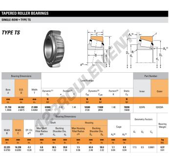Le Roulement Conique, connu sous la référence 02476-02420A-TIMKEN, de la marque TIMKEN, possède un diamètre intérieur de 31.75mm, un diamètre extérieur de 68mm et une épaisseur de 21mm.