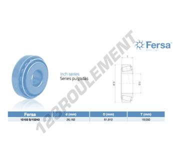 Le Roulement Conique, connu sous la référence 15103S-15243-PFI, de la marque PFI, possède un diamètre intérieur de 26.162mm, un diamètre extérieur de 61.912mm et une épaisseur de 19.05mm.
