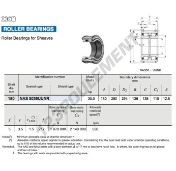 Le Roulement à Rouleaux, connu sous la référence SL045036-PPX-IKO, de la marque IKO, possède un diamètre intérieur de 180 mm, un diamètre extérieur de 280 mm et une épaisseur de 136 mm.